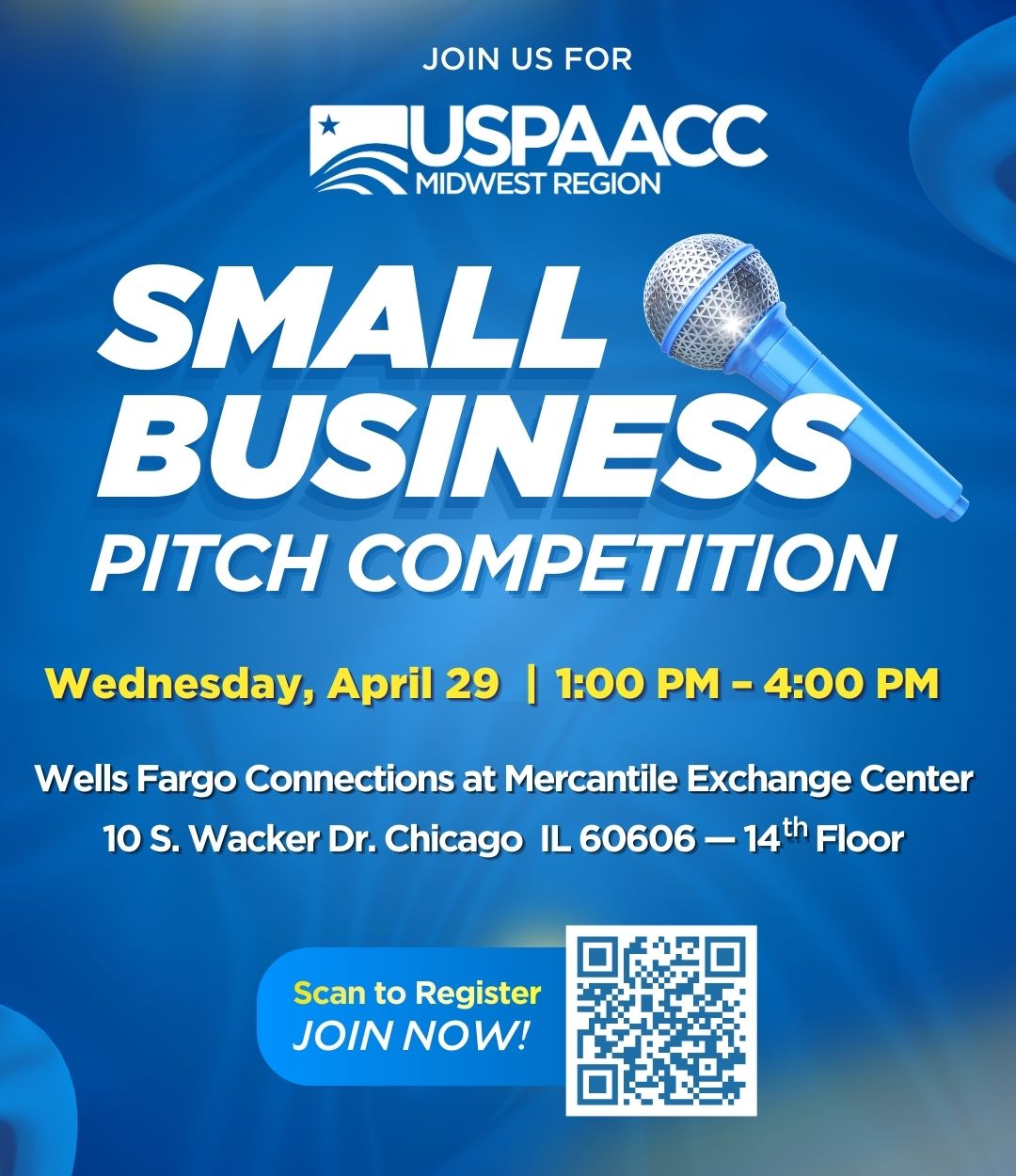 Join us for the USPAACC Midwest Small Business Pitch Competition — an exciting event showcasing bold ideas, emerging businesses, and inspiring founders. This dynamic afternoon will feature talented entrepreneurs pitching their businesses to a panel of esteemed judges. The finalists will earn the opportunity to take the stage at the “What’s Your Pitch?” competition during the CelebrASIAN 2026 Conference, where they will compete for a $5,000 cash prize and national visibility. Whether you’re an entrepreneur, business leader, investor, student, or simply passionate about innovation, this is a great opportunity to network, support small businesses, and witness the future of entrepreneurship.